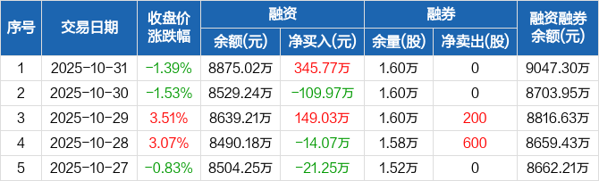 云路股份:融资净买入345.77万元,融资余额8875.02万元(10-31)
