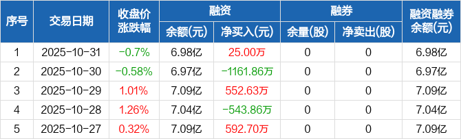 广大特材:融资净买入25万元,融资余额6.98亿元(10-31)