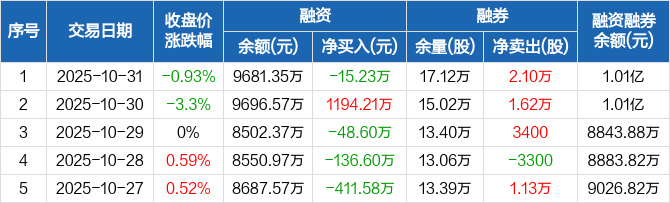 益丰药房:融资净偿还15.23万元,融资余额9681.35万元(10-31)