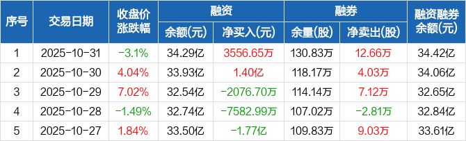 中国铝业:融资净买入3556.65万元,融资余额34.29亿元(10-31)