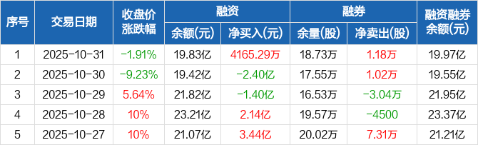 景旺电子:融资净买入4165.29万元,融资余额19.83亿元(10-31)