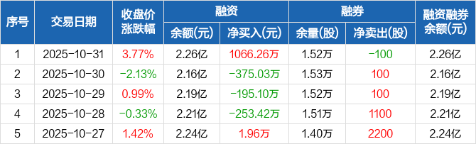 翠微股份:融资净买入1066.26万元,融资余额2.26亿元(10-31)