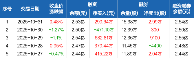 创业环保:融资净买入299.64万元,融资余额2.53亿元(10-31)