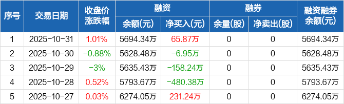 坤恒顺维:融资净买入65.87万元,融资余额5694.34万元(10-31)