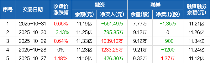 金证股份:融资净偿还561.49万元,融资余额11.19亿元(10-31)