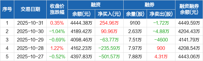 四川成渝:融资净买入254.96万元,融资余额4444.38万元(10-31)