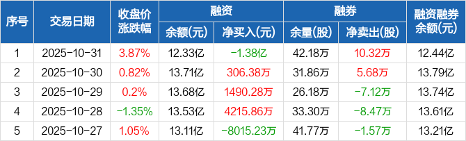 融资方面,当日融资买入1.07亿元,融资偿还2.44亿元,融资净偿还1.38亿元,净偿还额创12个月新高。融券方面,融券卖出11.97万股,融券偿还1.65万股,融券余量42.18万股,融券余额1130.85万元。融资融券余额合计12.44亿元。