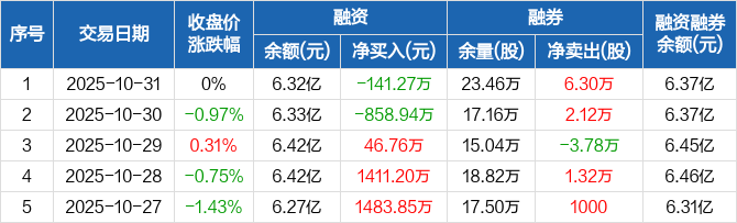 中航高科:融资净偿还141.27万元,融资余额6.32亿元(10-31)