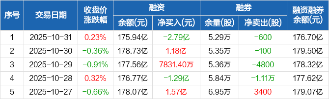 贵州茅台:融资净偿还2.79亿元,融资余额175.94亿元(10-31)