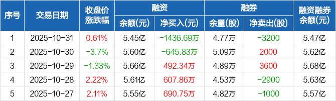 捷昌驱动:融资净偿还1436.69万元,融资余额5.45亿元(10-31)