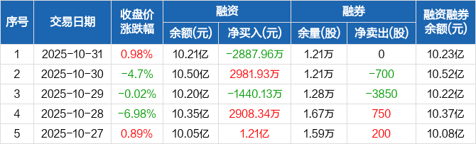 乐鑫科技:融资净偿还2887.96万元,融资余额10.21亿元(10-31)