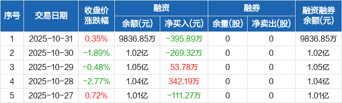 华之杰:融资净偿还395.89万元,融资余额9836.85万元(10-31)