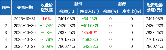 复洁环保:融资净偿还34.25万元,融资余额7401.98万元(10-31)