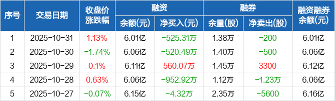 恒为科技:融资净偿还525.31万元,融资余额6.01亿元(10-31)