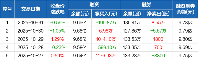 南京证券:融资净偿还196.87万元,融资余额9.66亿元(10-31)