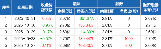 大商股份:融资净偿还361.67万元,融资余额2.67亿元(10-31)