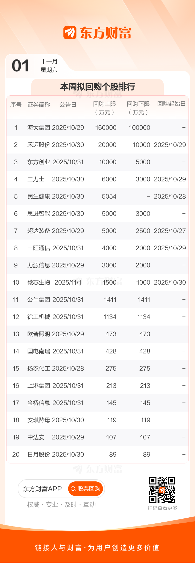 本周有42家公司宣布回购计划,按拟回购金额上限统计,计划回购金额22.39亿元。其中海大集团拟回购金额上限最高,为16.00亿元。