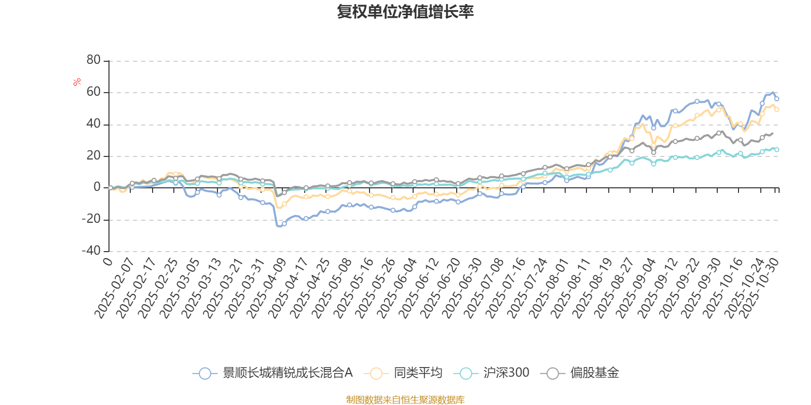截至10月30日,景顺长城精锐成长混合A近三个月复权单位净值增长率为45.77%,位于同类可比基金49/229;近半年复权单位净值增长率为80.47%,位于同类可比基金48/229。