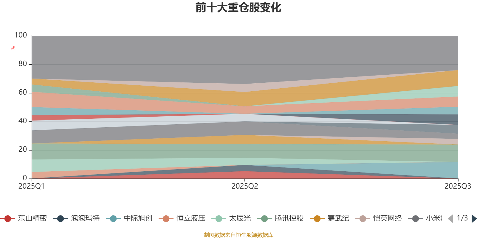 该基金持股集中度较高。截至2025年三季度末,基金十大重仓股分别是腾讯控股、中际旭创、新易盛、工业富联、沪电股份、阿里巴巴-W、源杰科技、拓普集团、恺英网络、小米集团-W。