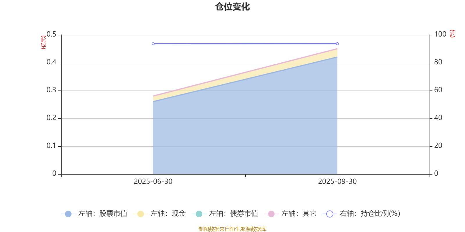 据定期报告数据统计,基金股票仓位长期保持较高水平,成立以来平均股票仓位为93.58%,同类平均为86.77%。2025年三季度末基金达到93.6%的最高仓位,2025年上半年末最低,为93.55%。