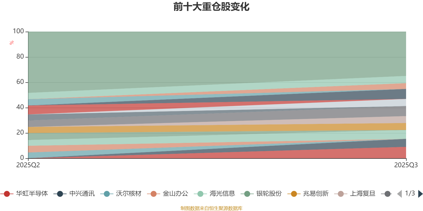 该基金持股集中度较高。截至2025年三季度末,基金十大重仓股分别是华虹半导体、中芯国际、寒武纪、海光信息、中兴通讯、三花智控、中微公司、上海复旦、兆易创新、通富微电。