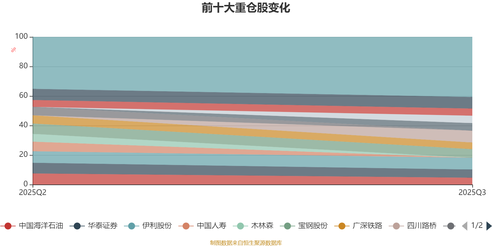 该基金持股集中度较高。截至2025年三季度末,基金十大重仓股分别是四川路桥、伊利股份、中国联通、宝钢股份、华泰证券、昆仑能源、华润燃气、中国平安、中国海洋石油、广深铁路。