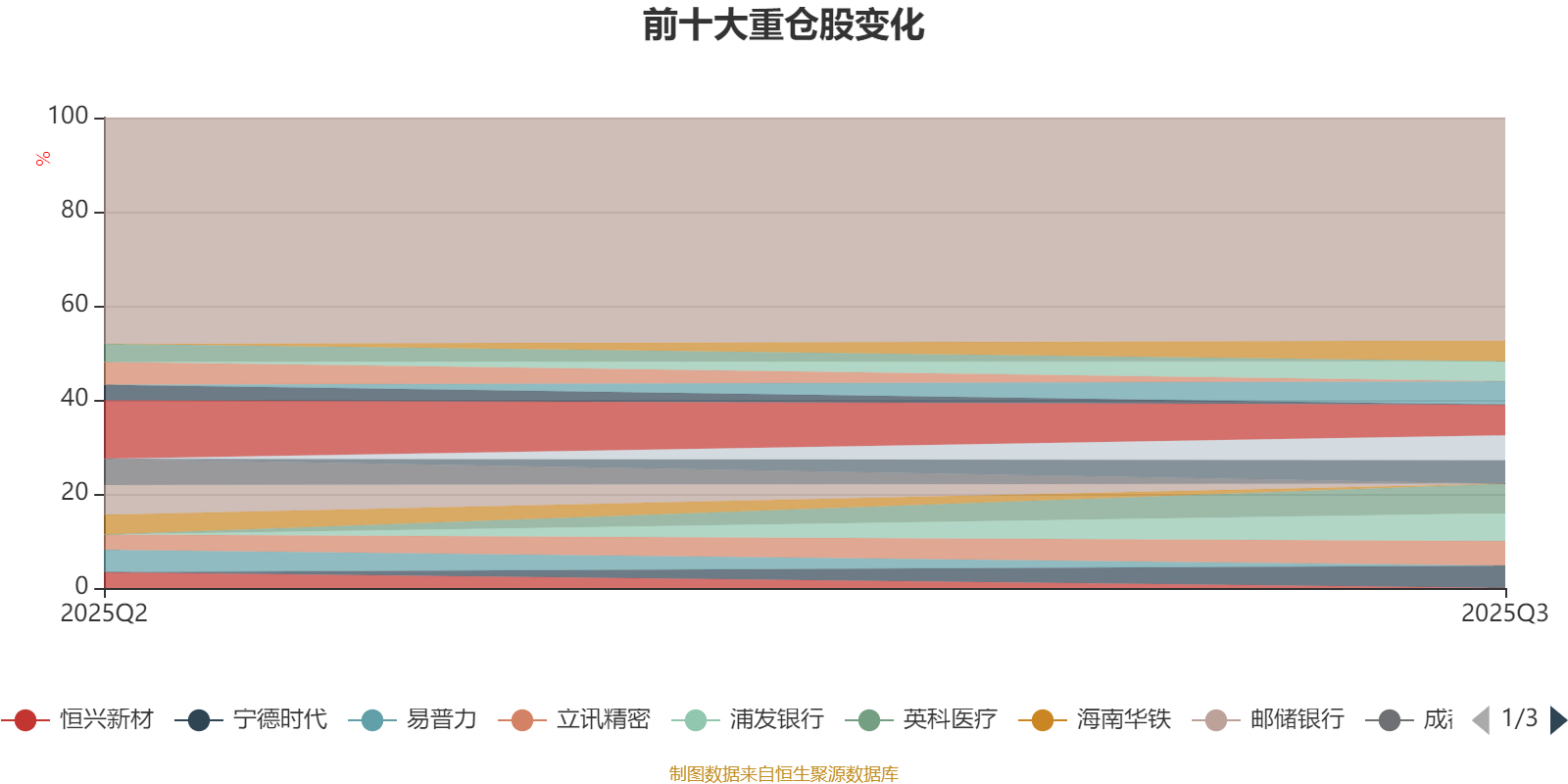 该基金持股集中度较高。截至2025年三季度末,基金十大重仓股分别是农业银行、英科医疗、浦发银行、工商银行、立讯精密、美好医疗、顺丰控股、宁德时代、ST华通、信邦智能。