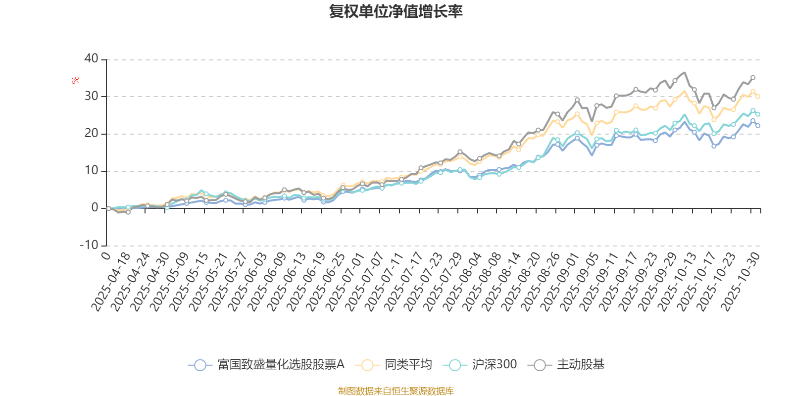 截至10月30日,富国致盛量化选股股票A近三个月复权单位净值增长率为10.82%,位于同类可比基金69/121;近半年复权单位净值增长率为21.78%,位于同类可比基金81/121。