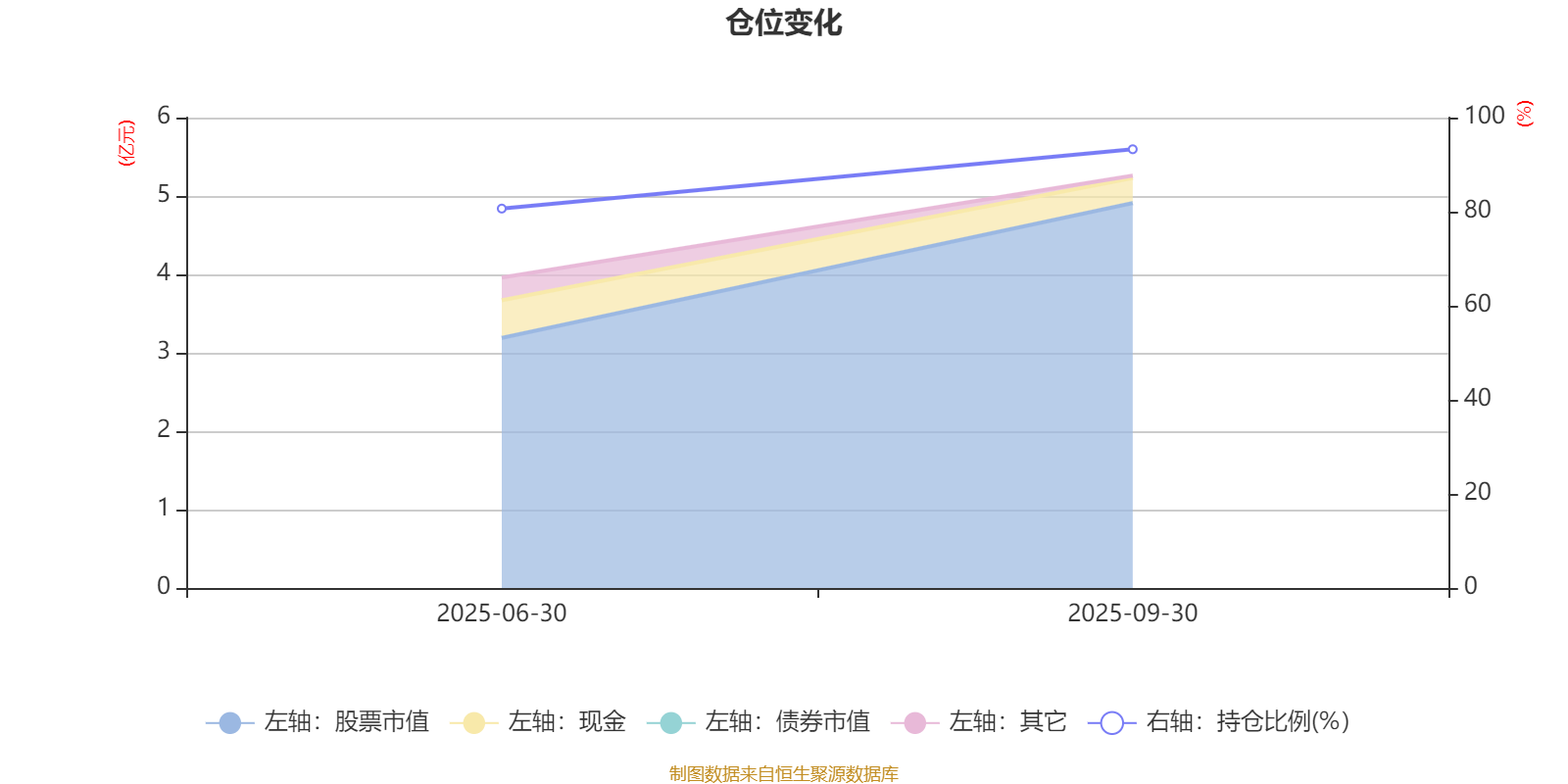 据定期报告数据统计,成立以来平均股票仓位为86.97%,同类平均为87.15%。2025年三季度末基金达到93.27%的最高仓位,2025年上半年末最低,为80.66%。