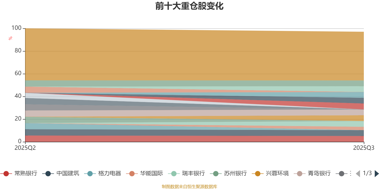 该基金持股集中度较高。截至2025年三季度末,基金十大重仓股分别是中国交通建设、华能国际电力股份、青岛银行、中国建筑、瑞丰银行、兴蓉环境、江苏银行、杭州银行、常熟银行、苏农银行。