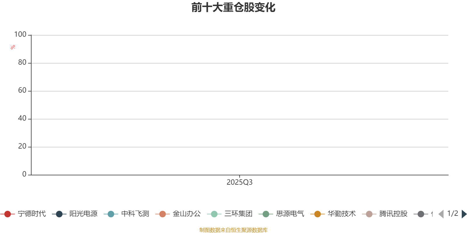 截至2025年三季度末,基金十大重仓股分别是腾讯控股、宁德时代、亿纬锂能、华勤技术、阳光电源、阿里巴巴-W、思源电气、中科飞测、三环集团、金山办公。