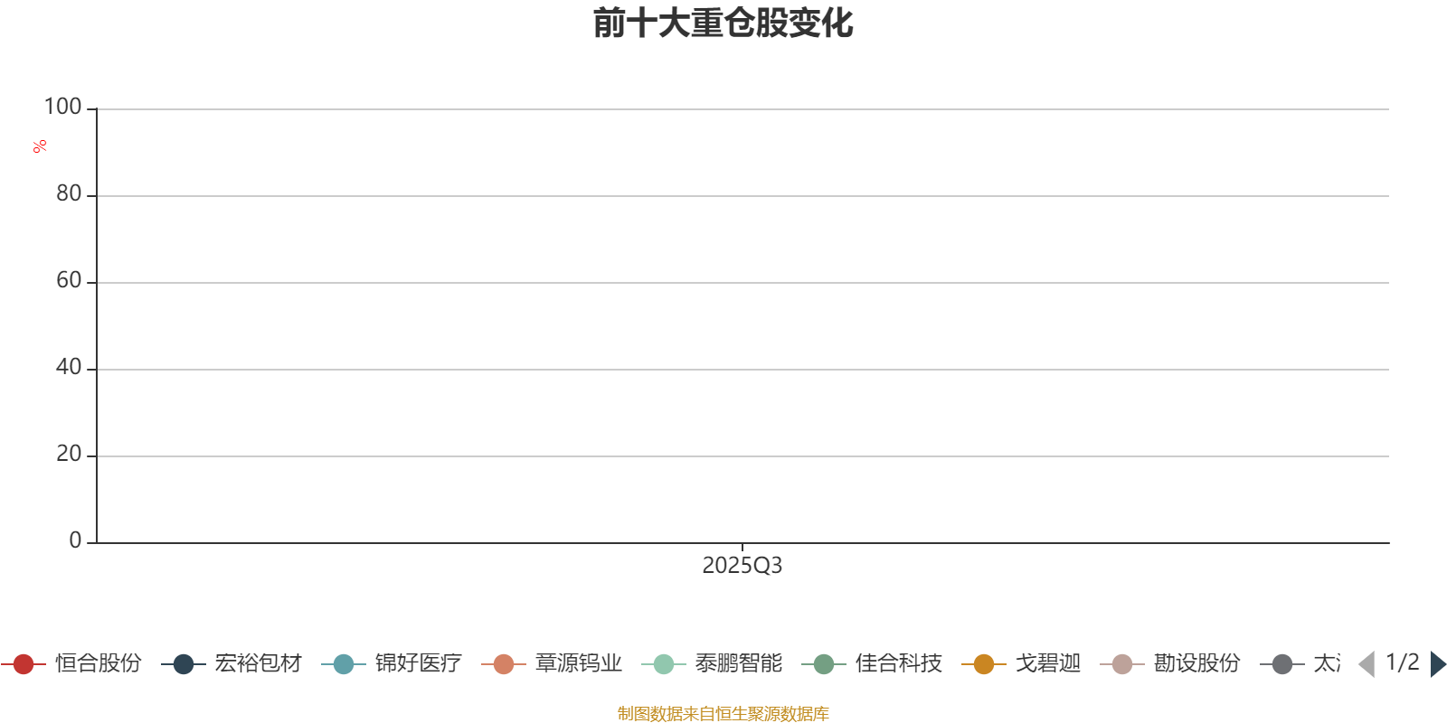 该基金持股集中度较高。截至2025年三季度末,基金十大重仓股分别是恒合股份、勘设股份、戈碧迦、佳合科技、锦好医疗、宏裕包材、章源钨业、泰鹏智能、太湖雪、泓禧科技。