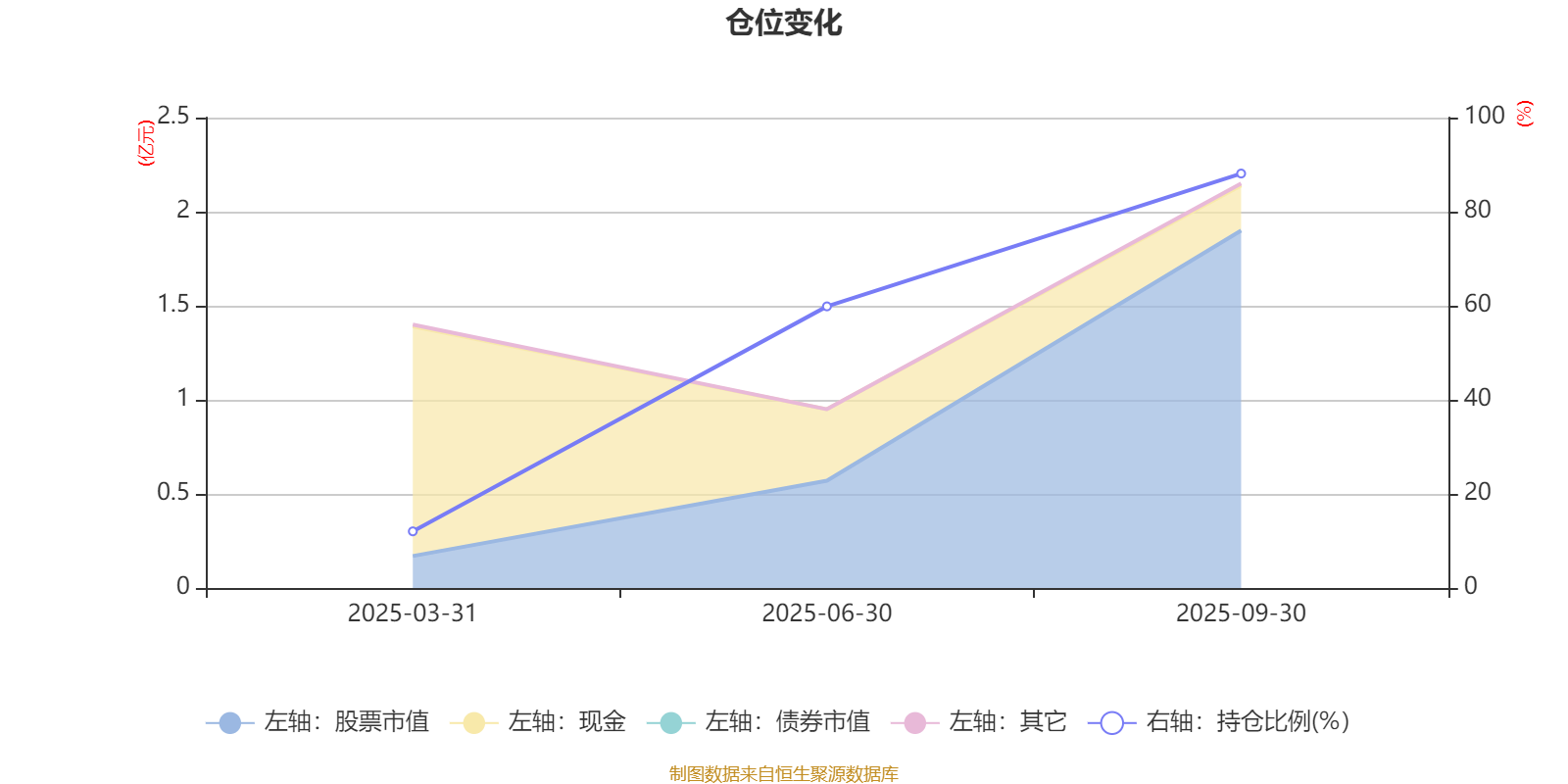 据定期报告数据统计,成立以来平均股票仓位为53.34%,同类平均为88.29%。2025年三季度末基金达到88.11%的最高仓位,2025年一季度末最低,为12.04%。