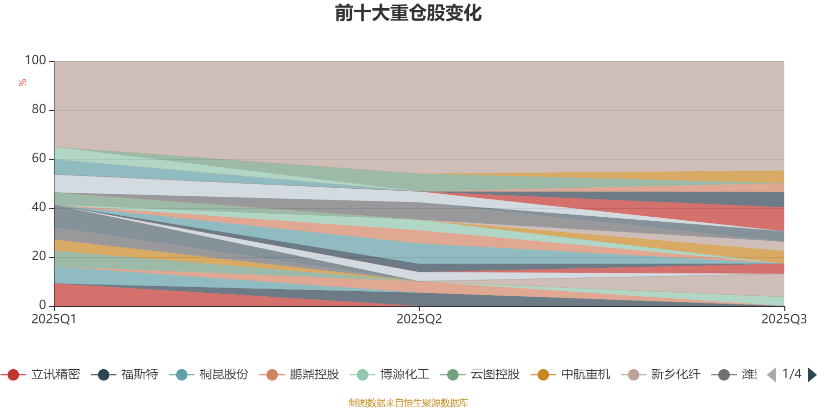 截至2025年三季度末,基金十大重仓股分别是华鲁恒升、新乡化纤、荣盛石化、恒逸石化、中泰化学、新疆天业、新凤鸣、合盛硅业、博源化工、鲁西化工。