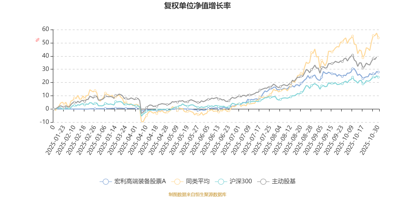截至10月30日,宏利高端装备股票A近三个月复权单位净值增长率为9.69%,位于同类可比基金56/63;近半年复权单位净值增长率为28.62%,位于同类可比基金51/63。
