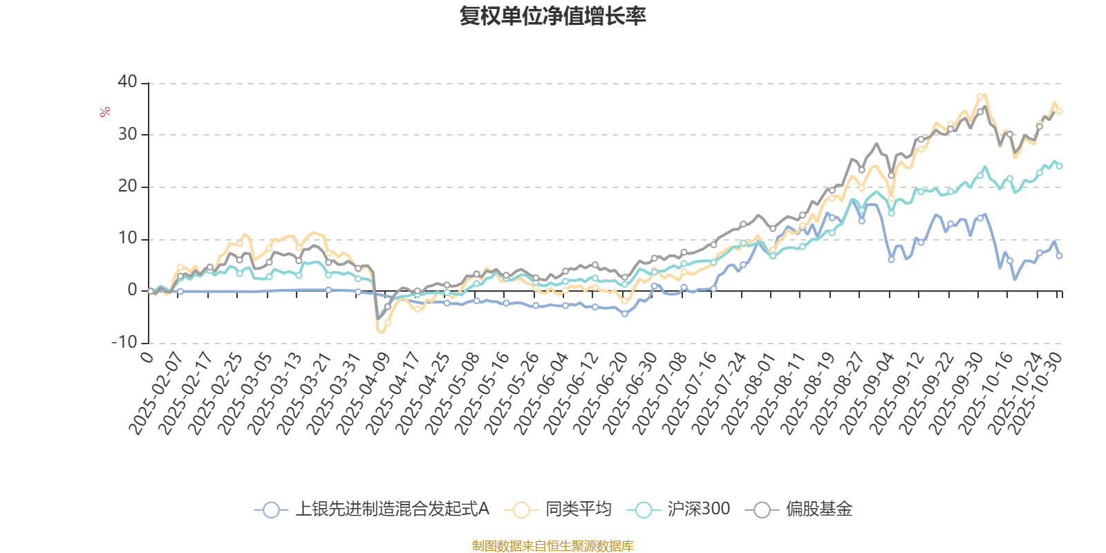 截至10月30日,上银先进制造混合发起式A近三个月复权单位净值增长率为-1.25%,位于同类可比基金97/100;近半年复权单位净值增长率为9.69%,位于同类可比基金96/99。
