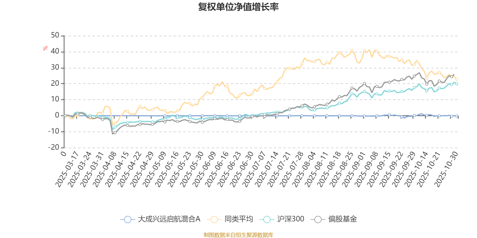 截至10月30日,大成兴远启航混合A近三个月复权单位净值增长率为-0.21%,位于同类可比基金15/106;近半年复权单位净值增长率为-0.18%,位于同类可比基金103/104。