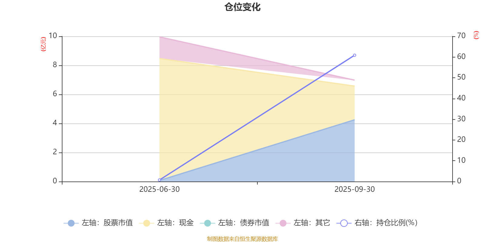 据定期报告数据统计,成立以来平均股票仓位为30.81%,同类平均为86.94%。2025年三季度末基金达到60.89%的最高仓位,2025年上半年末最低,为0.72%。