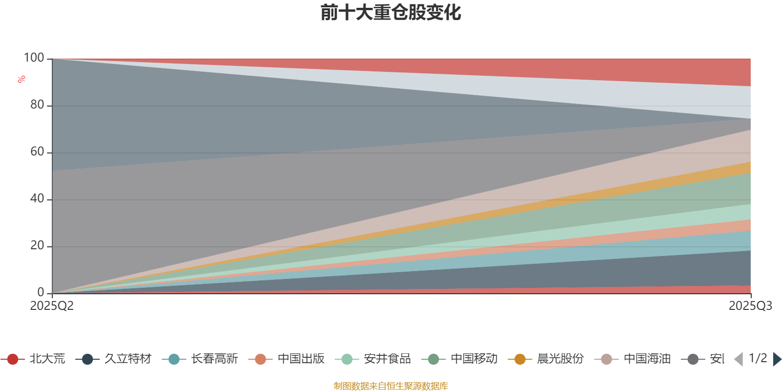 截至2025年三季度末,基金十大重仓股分别是久立特材、普洛药业、中国海油、中国移动、长春高新、安井食品、晨光股份、中国出版、安图生物、北大荒。