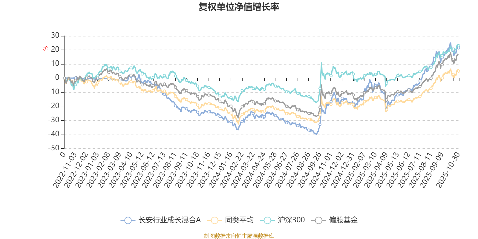 截至10月30日,长安行业成长混合A近三个月复权单位净值增长率为16.09%,位于同类可比基金271/689;近半年复权单位净值增长率为43.01%,位于同类可比基金127/688;近一年复权单位净值增长率为49.03%,位于同类可比基金98/658;近三年复权单位净值增长率为21.51%,位于同类可比基金151/364。