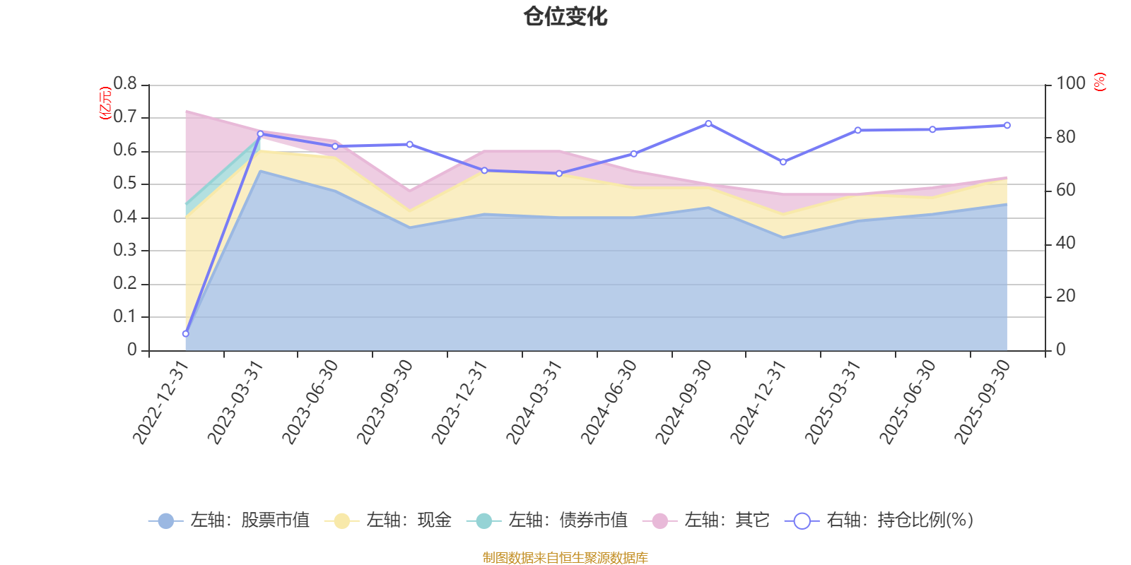据定期报告数据统计,近三年平均股票仓位为71.5%,同类平均为83.73%。2024年三季度末基金达到85.41%的最高仓位,2022年末最低,为6.37%。