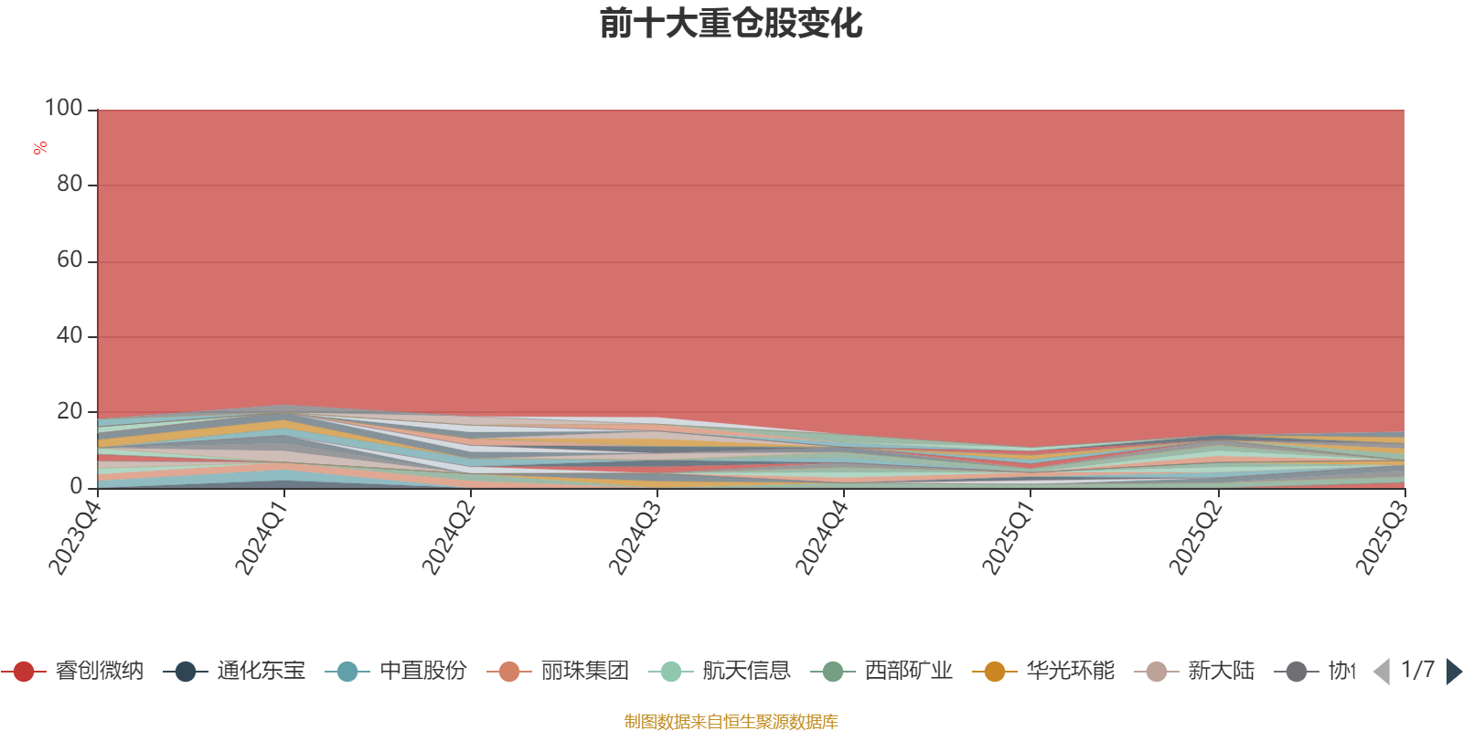 截至2025年三季度末,基金十大重仓股分别是拓荆科技、华天科技、协创数据、西部矿业、睿创微纳、中创智领、芯联集成、神火股份、西部超导、胜宏科技。