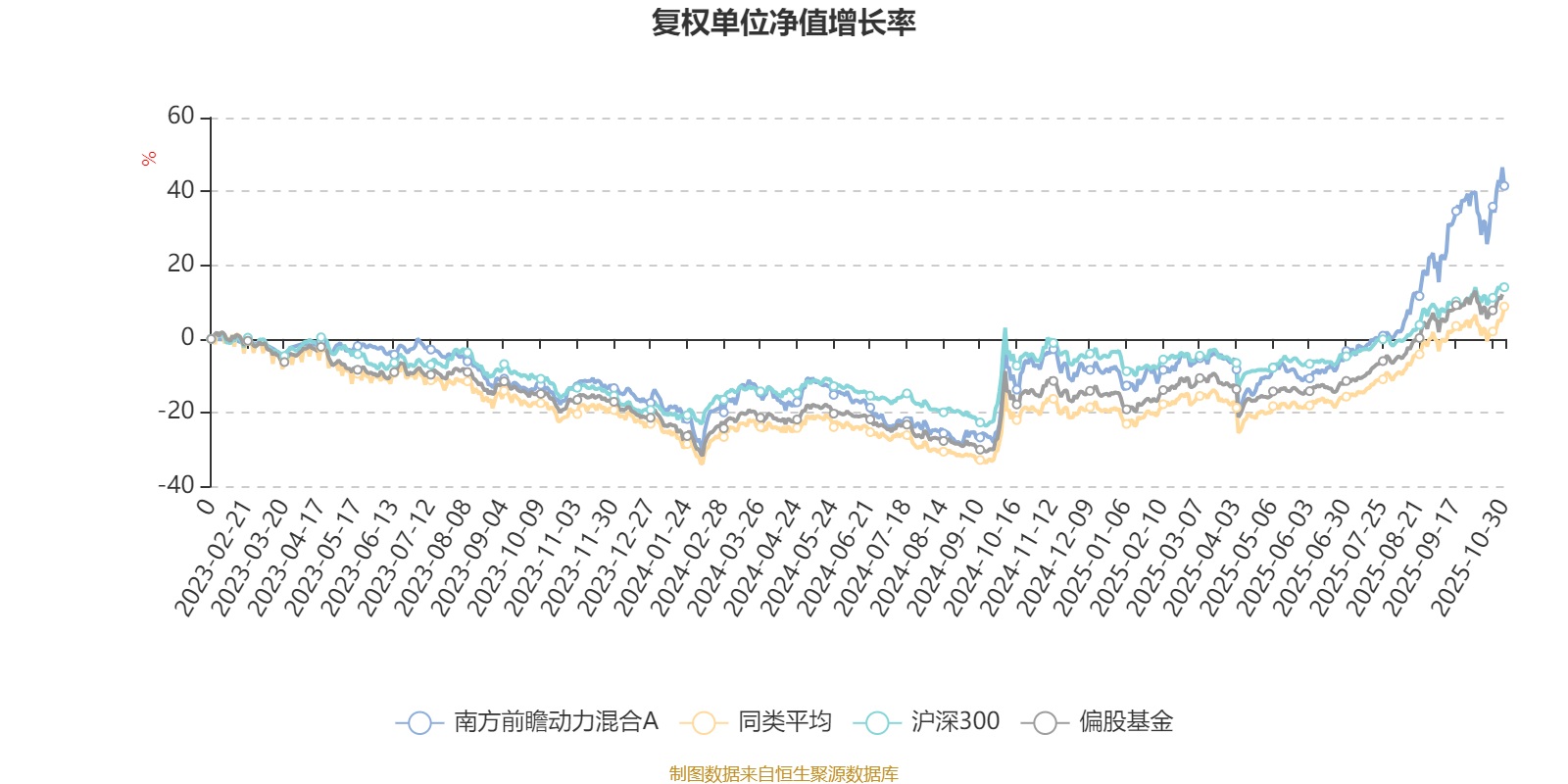 截至10月30日,南方前瞻动力混合A近三个月复权单位净值增长率为39.87%,位于同类可比基金29/621;近半年复权单位净值增长率为56.64%,位于同类可比基金58/621;近一年复权单位净值增长率为52.30%,位于同类可比基金103/611。