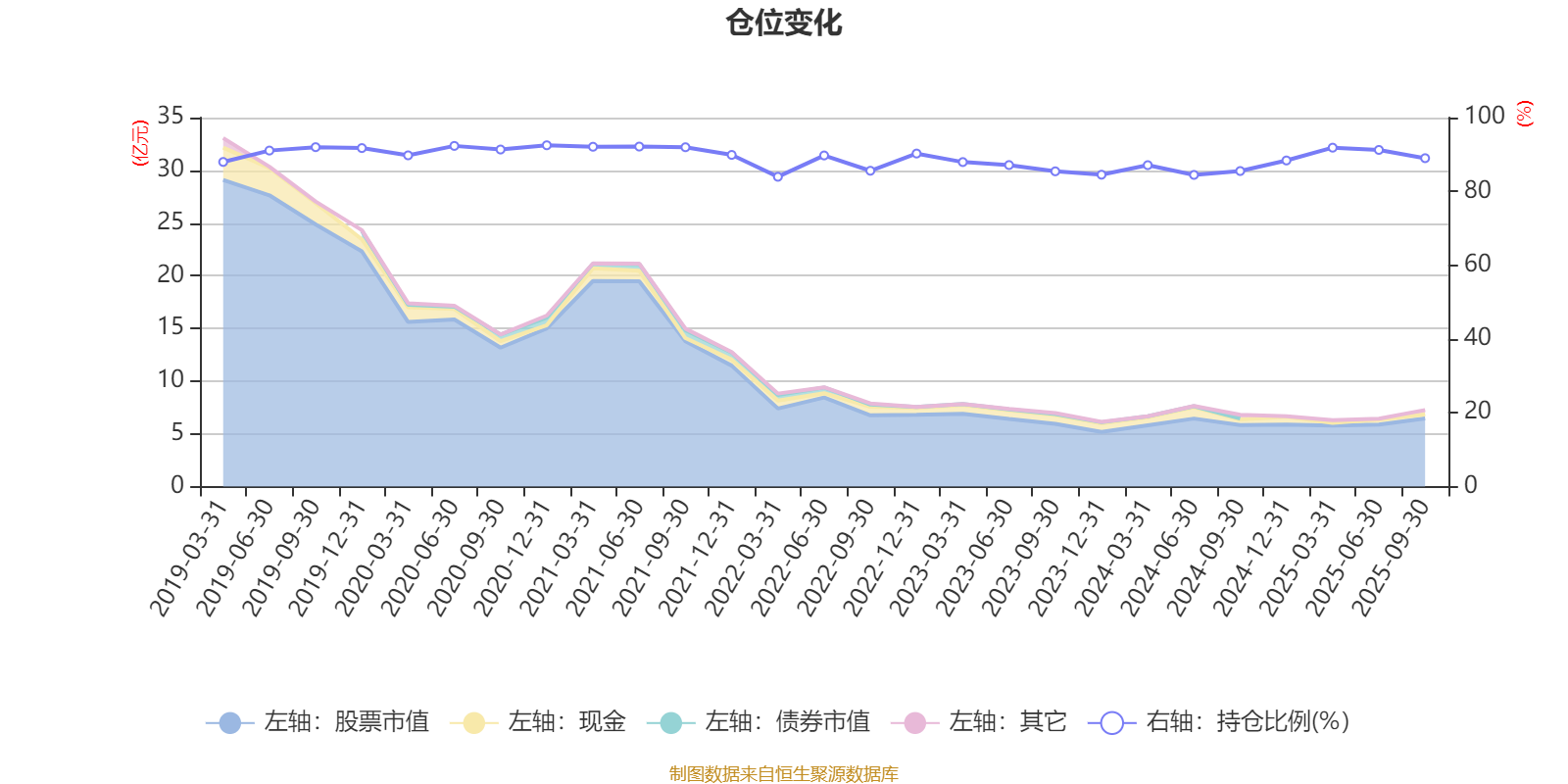 据定期报告数据统计,近三年平均股票仓位为87.74%,同类平均为85.99%。2020年末基金达到92.5%的最高仓位,2022年一季度末最低,为83.96%。