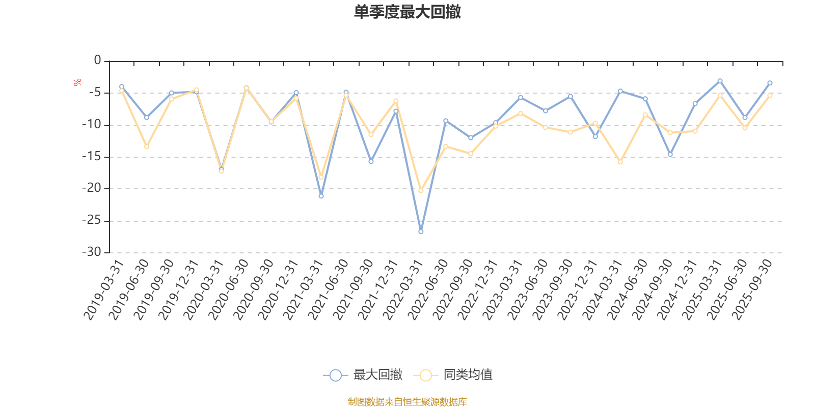 截至10月30日,基金近三年最大回撤为21.01%,同类可比基金排名20/251。单季度最大回撤出现在2022年一季度,为26.71%。