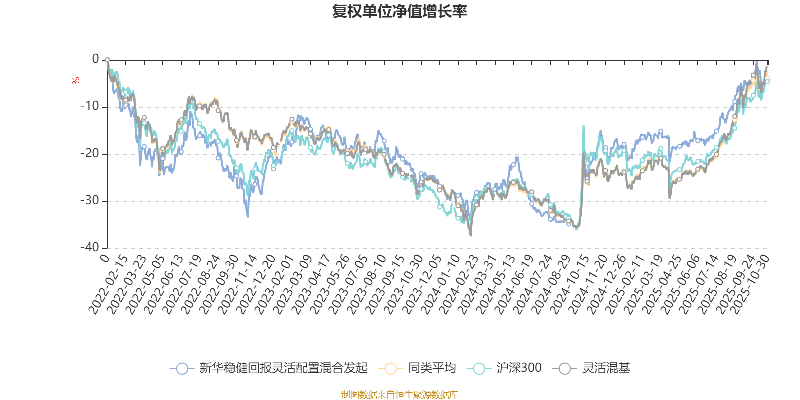 截至10月30日,新华稳健回报灵活配置混合发起近三个月复权单位净值增长率为9.68%,位于同类可比基金735/1287;近半年复权单位净值增长率为17.52%,位于同类可比基金827/1287;近一年复权单位净值增长率为19.77%,位于同类可比基金735/1287;近三年复权单位净值增长率为42.63%,位于同类可比基金211/1286。
