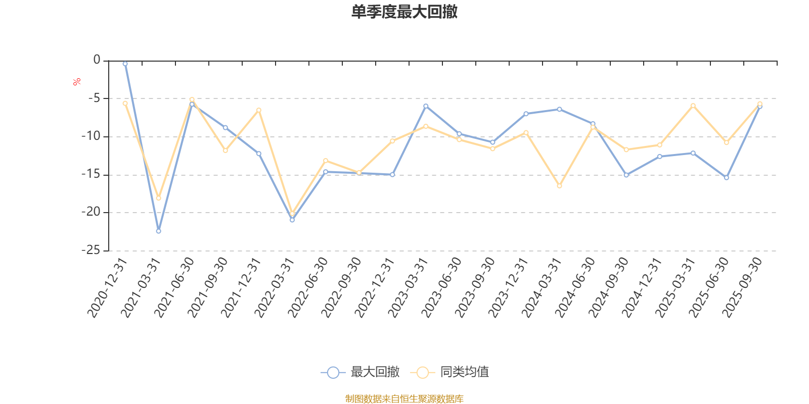 通过所选区间该基金净值增长率分位图,可以观察该基金与同类基金业绩比较情况。图为坐标原点到区间内某时点的净值增长率在同类基金中的分位数。