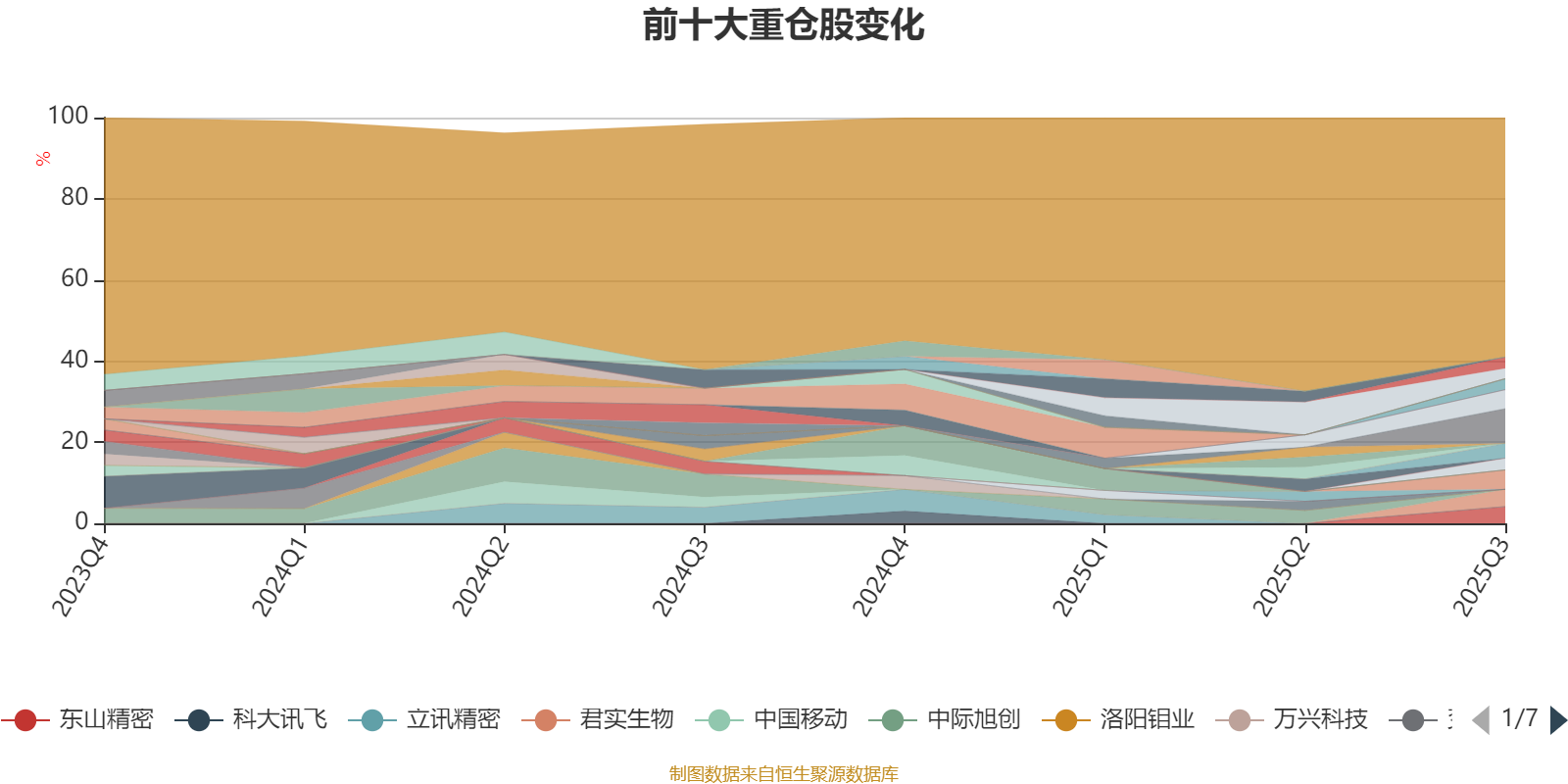 截至2025年三季度末,基金十大重仓股分别是信达生物、石药集团、恒瑞医药、君实生物、东山精密、贝壳-W、三生制药、九方智投控股、滨江集团、天孚通信。
