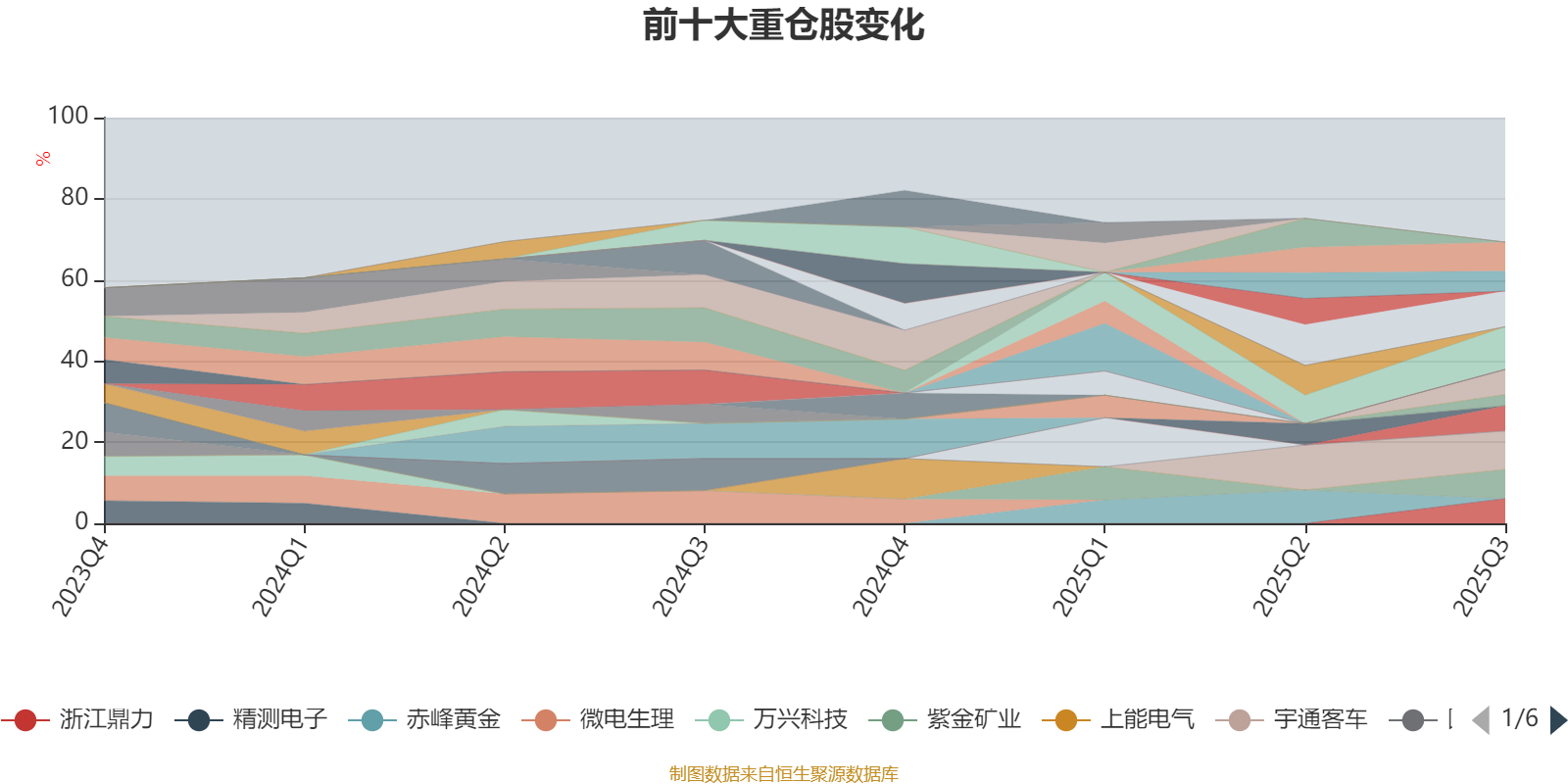 该基金持股集中度较高。截至2025年三季度末,基金十大重仓股分别是徐工机械、宇通客车、东威科技、紫金矿业、三一重工、宁德时代、巨星科技、浙江鼎力、山东黄金、大族激光。