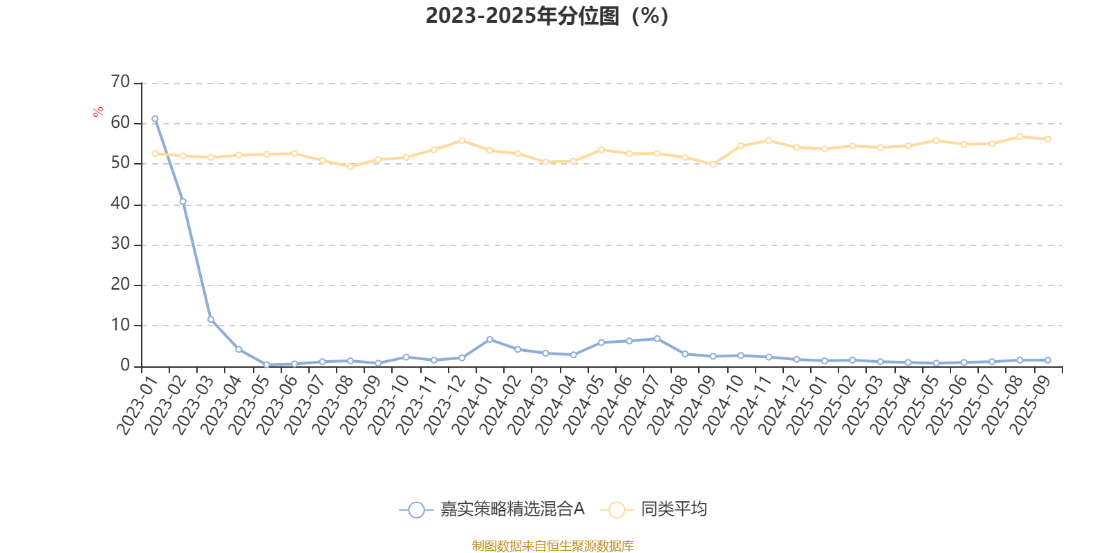 通过所选区间该基金净值增长率分位图,可以观察该基金与同类基金业绩比较情况。图为坐标原点到区间内某时点的净值增长率在同类基金中的分位数。